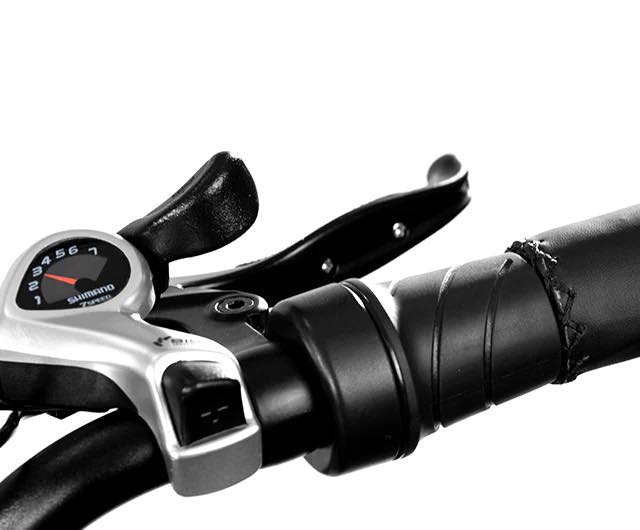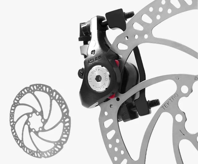 Coming with tektro hydraulic disc brakes, the Cruiser Pro keeps your rides safer than ever. Little force is needed to apply these brakes. 1 finger for braking, 4 fingers left on the grips, safer than ever.
